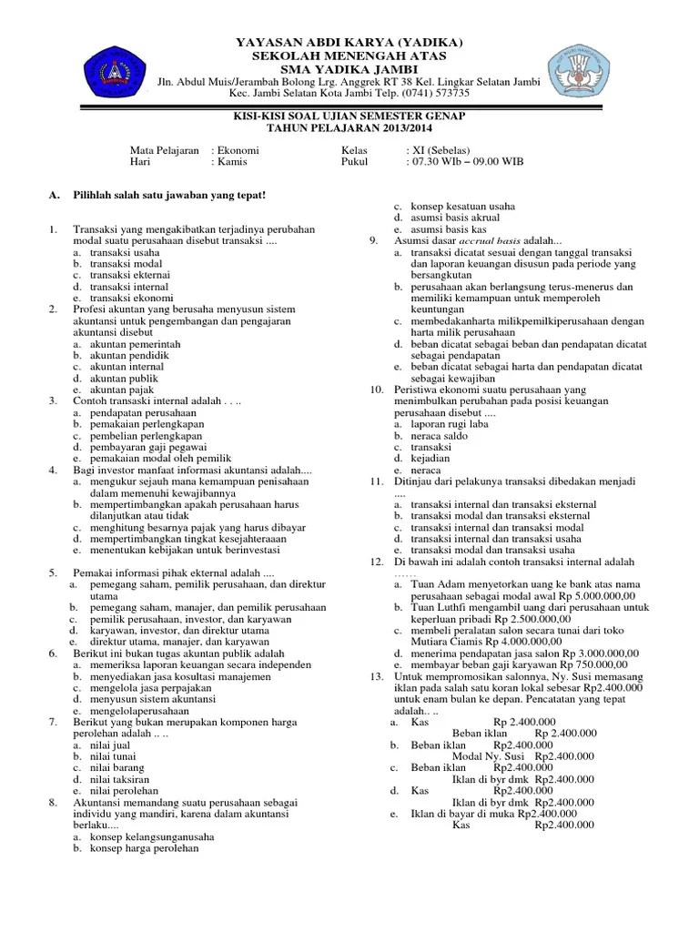 Jun 07, 2021 · soal pat / uas ekonomi kelas 11 tahun 2021 penilaian akhir tahun (pat) dilaksanakan oleh satuan pendidikan untuk memproses data pengumpulan dan pengolaaan informasi untuk mengukur pencapaian hasil belajar peserta didik ke tingkat selanjutnya. More images for soal uas ekonomi kelas 11 » Nov 24, 2018 · download soal uas ekonomi kelas 10, 11, 12 semester 1 k13 revisi 2018. Berikut ini list materinya : Dicariguru.com kembali membagikan kelengkapan perangkat evaluasi berupa download soal uas ekonomi kelas 10, 11, 12 semester 1 k13 revisi 2018 dan kunci jawaban.