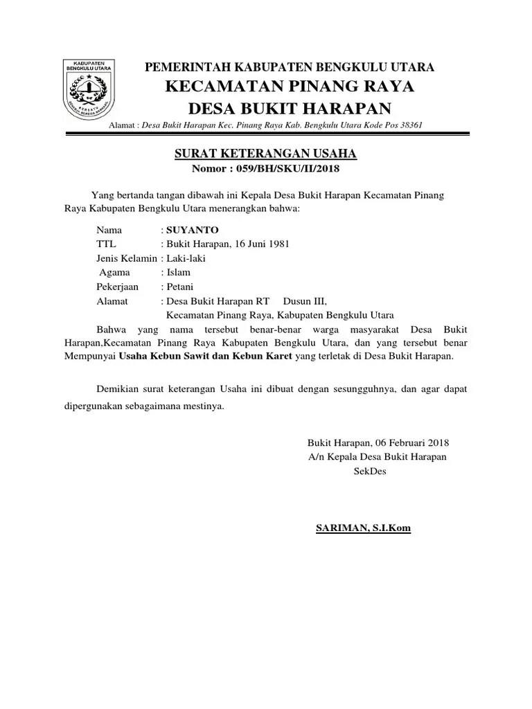 Syarat · mengisi formulir permohonan skdu. 3 tahun 1982, hingg surat izin usaha perdagangan (siup) yang diatur di dalam uu no. kop surat kepala desa surat keterangan usaha nomor:______ · fotokopi ktp pemohon · fotokopi kartu keluarga pemohon · fotokopi nomor pokok wajib pajak (npwp) pemohon · surat . Baik dari tanda daftar perusahaan (tdp) yang diatur uu no.