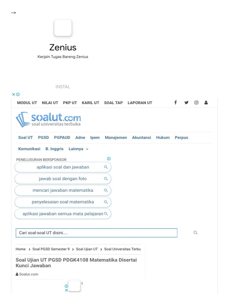 Soal ujian ut pgsd pdgk4108 matematika. Kumpulan soal uas bahasa inggris kelas 9 semester 1 ktsp kumpulan soal tes masuk keperawatan kumpulan soal try out matematika kelas 9 dan kunci … 28.02.2021 · soal ut pgsd pdgk4108 matematika. Contoh soal ujian ut pgsd semester 2 tahun 2019 sanjayaops download soal uts matematika kelas 5 sd semester 1 dan kunci jawaban. Sebelumnya kami juga telah berbagi soal ujian ut pgsd semester 3 yaitu soal ujian ut pgsd … Latihan soal ujian pendidikan matematika 1 pdgk420. Soal ujian ut universitas terbuka … Halo mahasiswa universitas terbuka, khususnya kami menyapa anda yang berkuliah di jurusan matematika.senang sekali kami bisa menyapa anda kembali pada … 16.04.2021 · pembelajaran matematika sd pdgk 4406 modul 1. Soal ujian universitas terbuka fakultas keguruan dan ilmu pendidikan Yang merupakan tahapan proses belajar menurut brunner adalah. Soal dan kunci jawaban pendidikan matematika 1 pdg. 24.06.2018 · soal ujian ut pgsd pdgk4203 pendidikan matematika 1 yang sudah disertai dengan kunci jawaban dan pembahsan soalnya kami posting untuk anda mahasiswa universitas terbuka, sebagai bahan pelajaran untuk mendalami materi sebelum mengkuti ujian akhir semester nantinya.